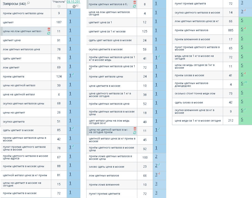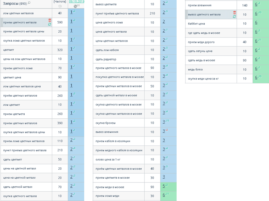Изначально сайт был оптимизирован под НЧ и СЧ запросы. После того как был достигнут ТОП по данным запросам и мы фактически уперлись в потолок по трафику около 1000 человек в месяц (98% ключей были в ТОП) мы стали точечно прорабатывать страницы под ВЧ запросы. Результаты не заставили себя долго ждать.